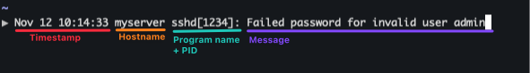 Each message has metadata that gives more details about the log. Here’s an example syslog entry: